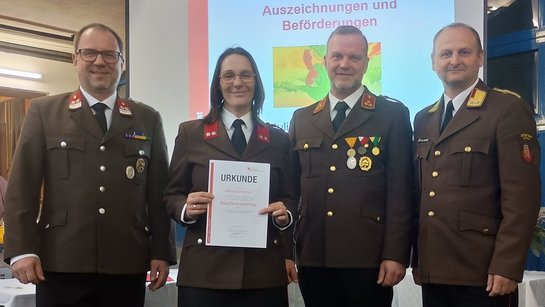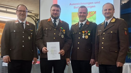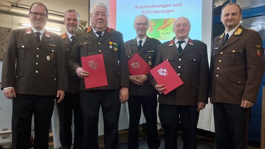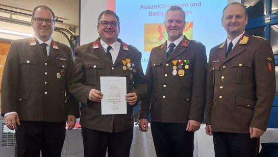 Für 25 jährige, verdienstvolle Tätigkeit in der Feuerwehr wurde OBI Hemetsberger Florian geehrt, OBM Höckner Franz wurde für 40 Jahre Feuerwehrdienst ausgezeichnet. Eine Urkunde für 60jährige, verdienstvolle Tätigkeit in unserer Feuerwehr wurde an E- OBI Wachter Matthias, E- AW Hofinger Rudolf sowie OBM Hemetsberger Johann , sowie in Abwesenheit BM Lacher Karl verliehen.